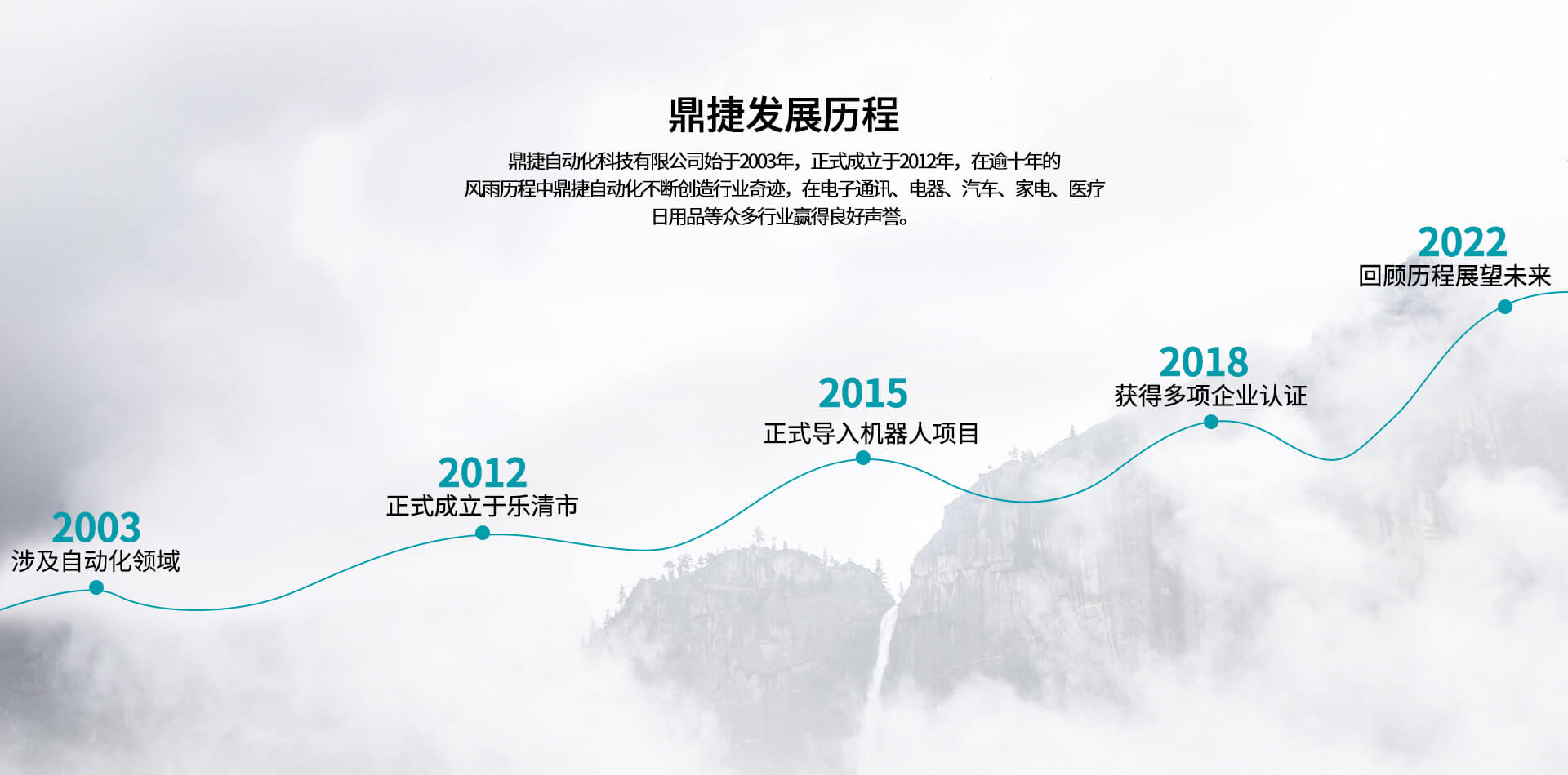 公司始于2012年,在逾十年的風(fēng)雨歷程中,不斷創(chuàng)造行業(yè)奇跡,在電子通訊、電器、汽車、家電、醫(yī)療、日用品等眾多行業(yè)贏得良好聲譽(yù)。公司坐落于浙江省樂(lè)清經(jīng)濟(jì)開(kāi)發(fā)區(qū),現(xiàn)有人員63人,擁有經(jīng)驗(yàn)豐富的工程技術(shù)研發(fā)團(tuán)隊(duì)11人,其中高級(jí)工程6人,具備本科以上學(xué)歷高級(jí)工程人員比例78%;同時(shí)鼎捷自動(dòng)化在蘇州,東莞等地設(shè)立分公司以服務(wù)目標(biāo)市場(chǎng)客戶,目前鼎捷自動(dòng)化已經(jīng)為下客戶提供配套自動(dòng)化解決方案:泰科、安費(fèi)諾、莫士、華為、中興、普聯(lián)、智英、意華、德豐、公牛、萬(wàn)事達(dá)、華豐、飛雕、普思、冠聯(lián)、俊朗松田、進(jìn)聯(lián)、高正、盛凌等。鼎捷自動(dòng)化專業(yè)從事連接器、開(kāi)關(guān)及相關(guān)電子、電器、五金、塑膠產(chǎn)品組裝自動(dòng)化定制、設(shè)計(jì)、制造、銷售。2012年,鼎捷自動(dòng)化正式導(dǎo)入機(jī)器人應(yīng)用項(xiàng)目,可為各類客戶提供電子、電器、汽車、五金、塑膠等集成自動(dòng)化智能組裝系統(tǒng)。